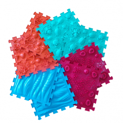 Тренирует и способствует улучшению вестибулярного аппарата у малышей за счёт перепадов поверхностей модулей. Эффективно развивает мелкую моторику, мышление и цветовосприятие у малыша. А также обладает тонизирующим воздействием.