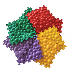 Рельефы поверхности соответствуют выемке здоровой стопы ребенка, а разные перепады между элементами коврика усиливают давление на поверхность стопы, а также доставляют приятные ощущения во время занятий.